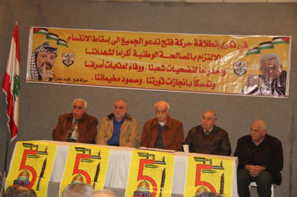 نظمت حركة التحرير الوطني الفلسطيني فتح منطقة صيدا ندوة سياسية بمناسبة الذكرى الحادية والخمسين لانطلاقة حركة "فتح" في قاعة بلدية صيدا حاضر فيها الحاج رفعت شناعة امين سر لجنة اقليم لبنان لحركة فتح.