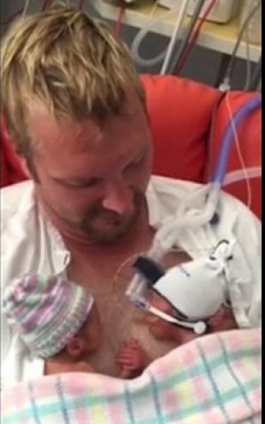 عرض مقطع فيديو لقطات مؤثرة لأب يحمل طفليه التوءم اللذين ولدا قبل موعدهما بأحد عشر أسبوعا، وهما يمسكان بأيدى بعضهما. وفقا لما نشرته صحيفة "ديلى ميل" البريطانية، ولد كريستين وكريستيانا في الرابع من يناير، بفيكتوريا، أستراليا، ويبلغ وزنهما أقل من كيلو جرام ولكن وضعهما الصحي كان جيدا، بالرغم من الصعاب التي واجهاها بسبب الولادة المبكرة.