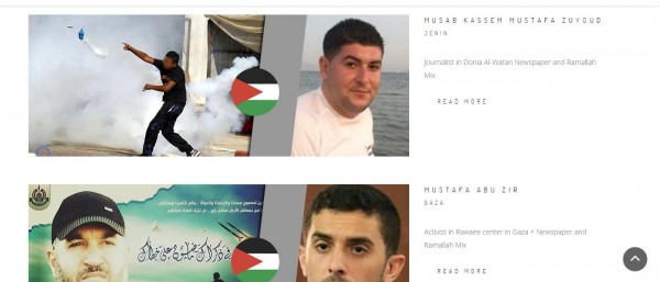 ونشر الموقع على صفحاته، أسماء وصور وبطاقات تعريف، لـ 22 فلسطينيًا، من بينهم 10 صحفيين ومدونين، معتبرًا إياهم 'محرضين'.