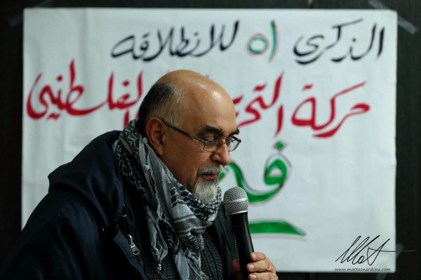 والقى الاخ بسام صالح امين سر الاقليم كلمة الحركة بدأها بشكر المشاركين وخص بشكره المخرج الايطالي لوجي بيريللي الذي قام باخراج او فيلم فتح - فلسطين باللغة الايطالية عام 1969 وتم اعادة ترميم هذا الفيلم مؤخرا وسيعرض في نهاية المهرجان، وشكر معه ايضا مونيكا ماور التي عايشت الثورة الفلسطينية وحافظ على ارشيف مصور لسنوات طويلة. كما شكر فنان الكاريكاتير انزو ايبشيلا 94 عاماوالذي يشارك برسوماته وبتواجده في المناسبات الفلسطينية . كما شكر لجان التضامن وما تقوم به للتعريف والدفاع عن القضية الفلسطينية. واكد في كلمته لاان انطلاقة حركة فتح في الفاتح من يناير 1965 كانت نقطة تحول جذرية في تاريخ الشعب الفلسطيني والمنطقة بكاملها، هذه الحركة العملاقة التي حولت مجموع اللاجئين الذين ينظر لهم العالم فقط من ناحية انسانية مأكل وملبس الى شعب يحمل السلاح