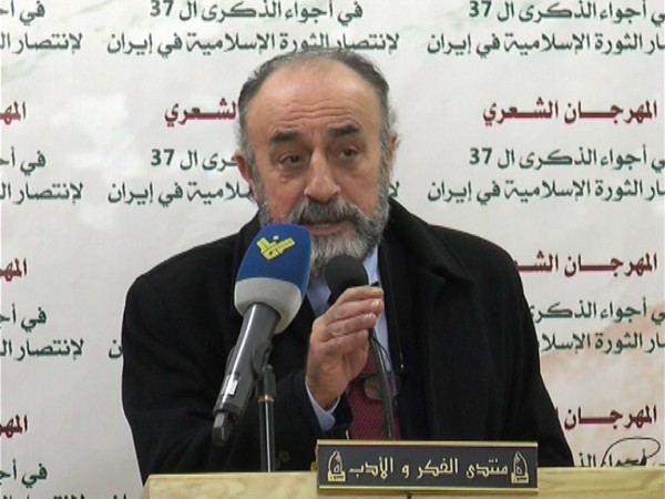 ثم ألقى رئيس منتدى الفكر والأدب الدكتور غسان فران كلمة باسم الجهات المنظمة قال فيها إننا نلتقي اليوم في هذا المهرجان الشعري احتفالاً بالذكرى 37 لانتصار الثورة الإسلامية في إيران بقيادة الإمام الخميني "قده"، والتي شكلت ولا تزال انتصاراً لفلسطين والمسلمين في كل أرجاء المعمورة، وهي مستمرة بعطاءاتها مع القيادة الحكيمة للقائد الخامنئي، وها هي تأتي هذا العام مترافقة مع البدء بتنفيذ الاتفاق النووي ورفع الحصار الجائر عن إيران، لتؤكد للعالم أجمع بأن الحرية والسيادة لا تأتي إلاّ بالمقاومة والتضحية والصمود والصبر لإحقاق الحق، وإسقاط كل أشكال التآمر والهيمنة.