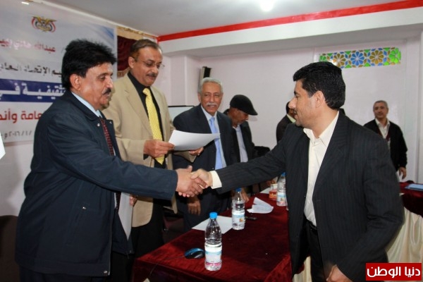 كرم نائب وزير الشباب والرياضة عبد الله بهيان المشاركين في الدورة التثقيفية في الصحة البدنية التي نظمها اتحاد الطب الرياضي للاتحادات الرياضية وأنديةالدرجة الأولى بأمانة العاصمة والتي استمرت خلال الفترة 25-27 يناير الجاري على صالة مبنى التدريب والتأهيل بوزارة الشباب والرياضة وشارك فيها (30) متدربا من تلك الجهات.