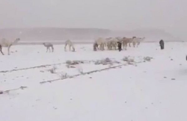 شهدت مدينة عرعر، على الحدود الشمالية الغربية للسعودية، الأربعاء وفجر الخميس، تساقطاً كثيفاً للثلوج.