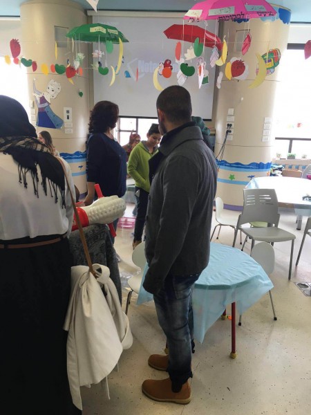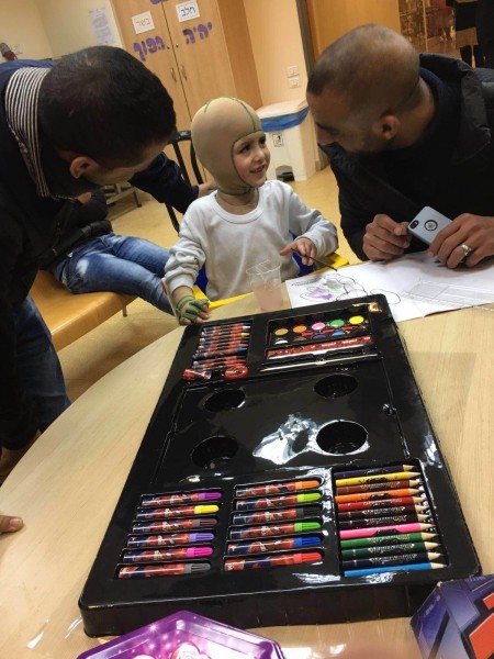كما قام الوفد بزيارة انسانية الى مستشفى شنايدر، حيث حملوا معهم الهدايا الى كافة الاطفال من يهود وعرب المصابين بمرض السرطان.