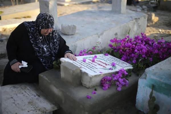 حاول أحد المواطنين من قطاع غزة الحصول على بصمة امه المتوفية على إحدى الأوراق داخل أحد القبور شرق مدينة غزة في اولى لحظات دفنها.
