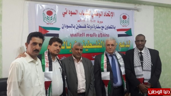 نظمت سفارة دولة فلسطين في جمهورية السودان، بالتعاون مع الاتحاد الوطني للشباب السوداني، ندوة سياسية بمناسبة اليوم العالمي لدعم حقوق الفلسطينيين بالداخل المحتل عام 1948م، وذلك في مقر الاتحاد بالخرطوم، بحضور سفير دولة فلسطين د.سمير عبد الجبار، والأمين العام للاتحاد وقيادته وكوادره، والجالية الفلسطينية، وشخصيات فكرية وحزبية ونقابية سودانية.
