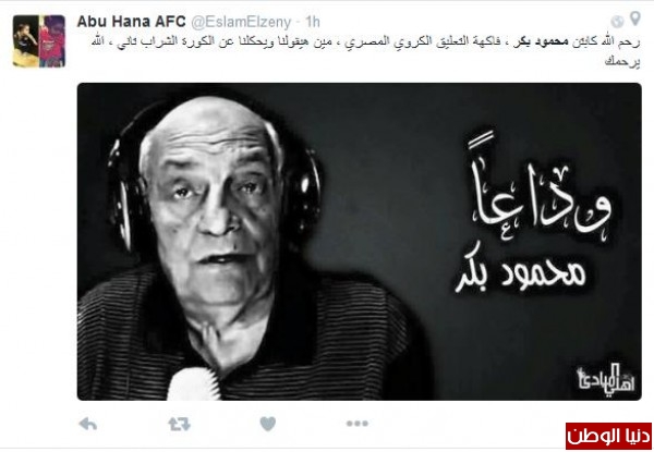 الهاشتاج قلب تويتر الى اللون الأسود، يث دعا له الجميع الرحمة والمغفرة ولأهله بالصبر والسلوان، وليبكيه جميع المغرّدين على الهاشتاج ويفتقدون سكر التعليق الكابتن محمود بكر