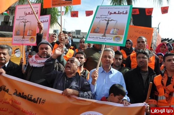 المبادرة الوطنية تنظم وقفة تضامنية لمقاطعة المنتجات الاسرائيلية ولدعم الاسير المضرب عن الطعام محمد القيق