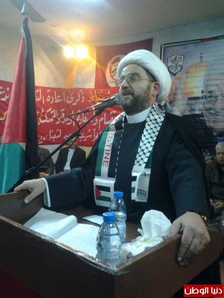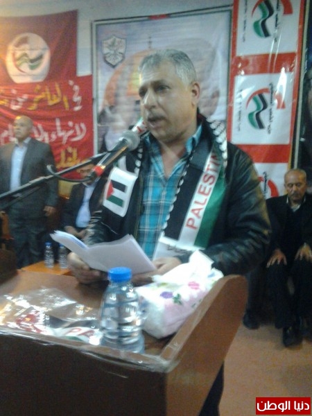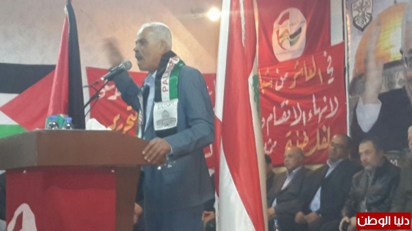 كما تطرق الى ما يحصل من مؤامرة تفتيت الوطن العربي وتمزيقه تحت اسماء وعناوين لا تخدم الا المشروع الاستعماري لجهة تابيد سيطرته على مقدرات شعوبنا العربية وانهاء القضية الفلسطينية خدمتا للمصالح الامبريالية بزعامة الولايات المتحدة الامريكية،مؤكدا على ضرورة مواجهة الهجمة الاستعمارية التي لا يوجد مستفيد منها سوى العدو" الصهيوني"،واشاد بالنضال اليومي الذي يخوضه شعبنا فوق اراضي دولة فلسطين والنضال باشكال بدائية متسلحا بالحق الفلسطيني العربي وايمانه بحتمية الانتصار.