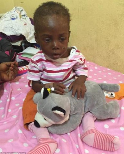 وأضافت الصحيفة أن عاملة الإغاثة الدنماركية أنجا رنجرين -التي تعيش في إفريقيا وتعمل مع منظمات لرعاية الأطفال- وجدت الطفل في حالة مزرية -يكاد أن يلتصق جلده بعظامه- يهيم في الشوارع بدون ملابس نهاية شهر يناير الماضي، فأطعمته ودثّرته بالملابس ثم اصطحبته للمستشفى.