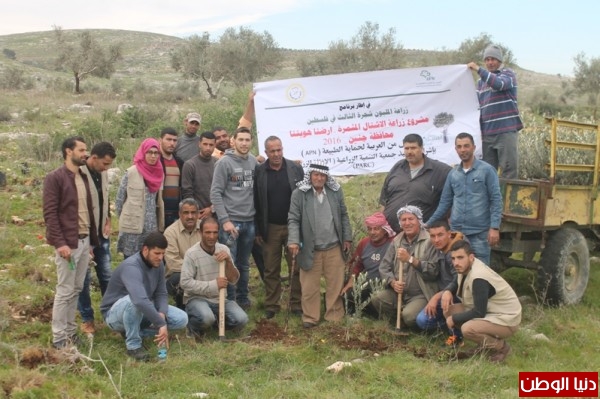 في إطار حملتها السنوية لزراعة الأشجار في الاراضي الفلسطينية المهددة بالمصادرة، نظمت الإغاثة الزراعية اليوم 18/2/2016 يوماً تطوعياً لزراعة اشتال الزيتون في اراضي بلدة عرابة غربي جنين، وبالتحديد في قطع الأراضي المحاذية لمستوطنة دوتان.