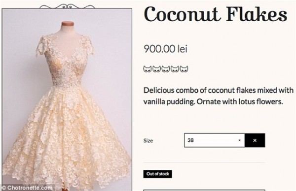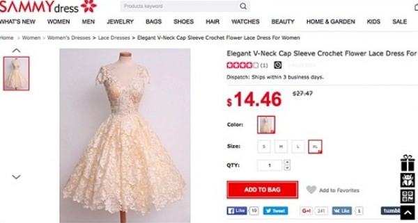 حصلت العروس على فستان ردئ الصنع من الصين يشبه زى الهالوين كما وصفته العروس بدلا من أن يكون أمريكيا كما أعلن على الموقع، وعثرت العروس على الفستان من خلال إعلان عبر “فيس بوك” مما دعى الإدارة لفتح تحقيق بالواقعة.