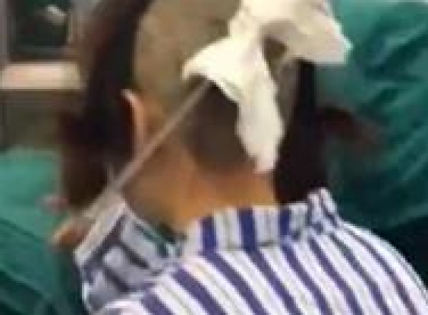 التقط مقطع فيديو للزوج داخل إحدى المستشفيات في الصين، حيث وقوع الجريمة، بينما يتجهز الزوج للدخول إلى غرفة العمليات ليخضع لعملية جراحية لإزالة هذا الساطور، بحسب موقع ميرور البريطان، فلم لم يشر الموقع إلى مكان حدوث الواقعة.