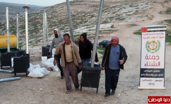 وبدا أحد هؤلاء الأطفال، حافي القدمين ويرتدي ملابس رثة، وهو يعين والده على إدخال مدفأة تعمل بواسطة الحطب، قدمتها طواقم هيئة الأعمال ضمن عشرات المدافئ والطرود الغذائية للعائلات التي تعيش في المضارب البدوية في ظل ظروف غاية في القسوة، ومعاناة لها أشكالها المتعددة، أبرزها استهدافها المباشر والدائم من قبل الاحتلال الإسرائيلي، بقصد ترحيلها عن المكان الذي تعيش فيه منذ مئات السنين.