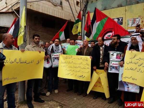 في ذكرى انطلاقة الجبهة الديمقراطية وقفة تضامنية ومهرجان خطابي مع الأسرى المضربين عن الطعام والأسير المحرر عمر النايف في جنين