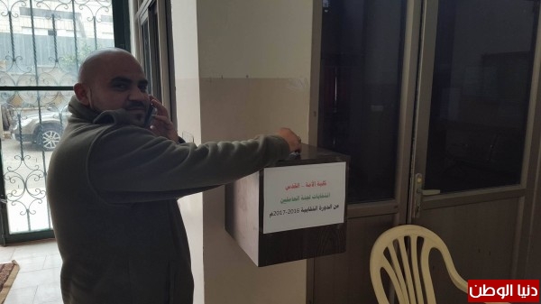 بناء على دعوة لجنة الانتخابات وتحت اشراف وزارة العمل الفلسطينية، جرت اليوم الإثنين الموافق 22/2/2016م، انتخابات لاختيار أعضاء لجنة العاملين في الكلية المقدسية عن الدورة النقابية الجديدة 2016/2017م. وقد بدأت الاقتراع الساعة