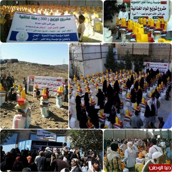 دشنت مؤسسة رباط الخير التنموية ، مشروع توزيع المواد الغذائية على الأسر الأشد احتياجا لعدد ( 1000 أسرة ) ، موزعه على دفعات كانت الدفعة الاولى بالشراكة مع مؤسسة المودة التنموية لعدد 300 سلة في محافظة تعز (النشمة)، والدفعة الثانية في صنعاء في مقر المؤسسة وجزء منه في محوى الازرقين بأجمالي عدد 300 سلة ، والدفعة الثالثة والرابعة سيكون التوزيع في مدينة تعز المحاصرة وخارجها.