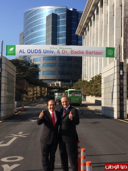 و بادر بالدعوة إلى الشراكة مع جامعة سيوكيونج عضو مجلس الأمناء رجل الأعمال الفلسطيني الدكتور فاروق الشامي الذي يحاول جاهداً من خلال مشاريع التنمية التي يقيمها في فلسطين بفتح آفاق فرص عمل من خلال برامج مهنية حديثة تستجيب
