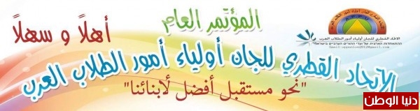 تحت شعار "نحو مستقبل أفضل لطلابنا"، يعقد الإتحاد القطري للجان أولياء أمور الطلاب يوم السبت القريب (27.2.16)، في منتزه الواحة في أم الفحم، مؤتمره السنويّ، حيث من المتوقع أن يشارك فيه عددٌ كبيرٌ من لجان أولياء أمور الطلاب قطريًا.