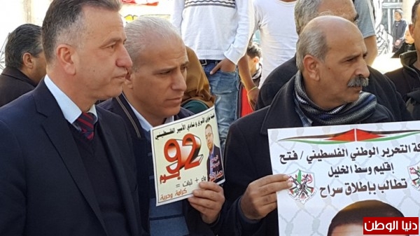 وقال أمين سر حركة فتح إقليم وسط الخليل عماد خرواط، إن حركة فتح ستبقى الوفية للحركة الأسيرة، وستواصل فعالياتها التضامنية مع الأسرى حتى تحرير كافة الاسرى من سجون الاحتلال مؤكدا وقوف حركة فتح خلف الاسير محمد القيق في معركته حتى تحقيق الانتصار والغاء الاعتقال الاداري