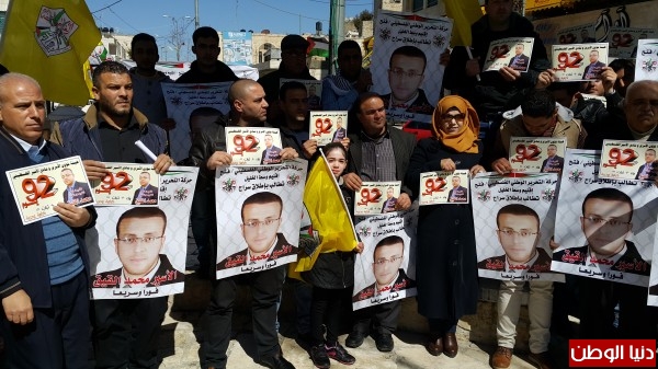 وقفة تضامنية مع الأسير القيق في الخليل في يومه الثاني والتسعون