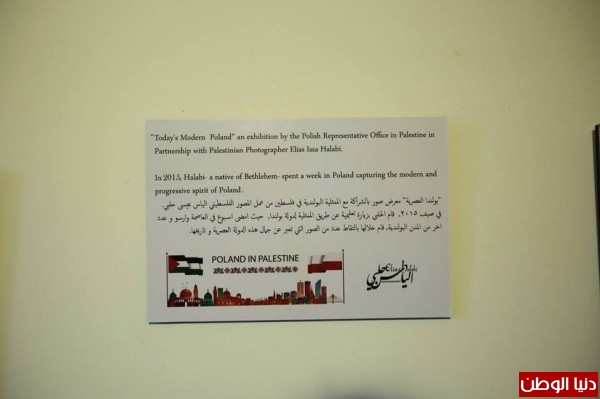 بحضور ممثل جمهورية بولندا في فلسطين السيدة الكسندرا بوكوفسكا-ماكيب وممثلي عدد من القنصليات الأخرى في فلسطين، تمّ مساء أمس افتتاح معرض "بولندا العصرية" في سينجر كافيه في بيت ساحور. نظّم المعرض من قبل مكتب الممثلية البولندية بالتعاون مع المصور الفلسطيني الياس حلبي. وضمّ المعرض عدد من الصور التي تعبّر عن جمال جمهورية بولندا وتاريخها، والتي التقطتها عدسة الحلبي في