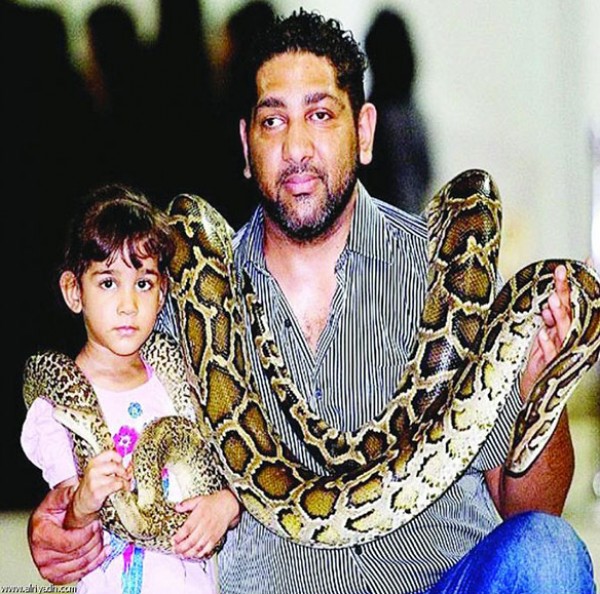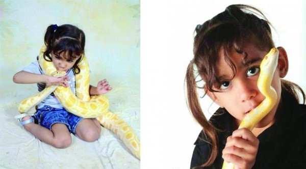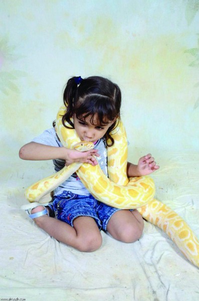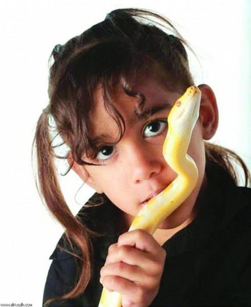 بالصور: أصغر طفلة سعودية تروض أضخم الأفاعي