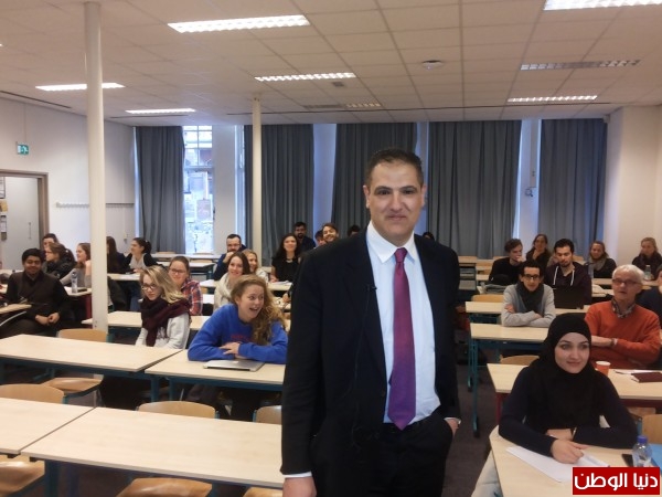 عميد كلية الحقوق والسياسة في جامعة الخليل يلقي محاضرة في هولندا حول فلسطين والمحكمة الجنائية الدولية