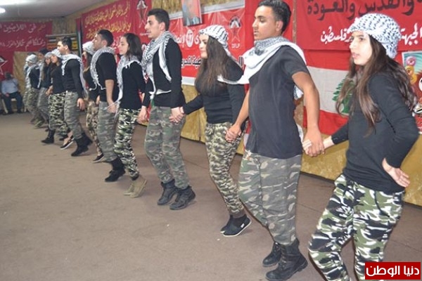 كما قدمت فرقة العائدين التابعة لاتحاد الشباب الديمقراطي الفلسطيني لوحات فنية رائعة من وحي المناسبة، وقد ترحيبا واسعا من الجمهور.
