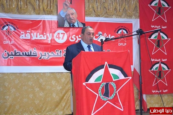 كلمة الجبهة الديمقراطية القاها عضو المكتب السياسي الرفيق "أبو بشار ابراهيم النمر" فقال:" ان ما تشهده المنطقة يضع شعبنا امام تحديات كبيرة بضرورة مواجهة العدوان الاسرائيلي والاستيطان، داعيا الى اعادة الاعتبار للقضية الفلسطينية ودعم الشعب الفلسطيني ونضاله خاصة في هذه المرحلة التي يحتاج فيها كل دعم من اشقاءه العرب خاصة في ملفات الانقسام واعادة اعمار غزة وحماية القدس والضفة من الاستيطان..