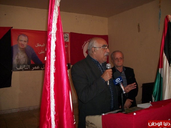 وأضاف، نقف أمام الشهيد عمر النايف ونضالاته، لقد كان من أوائل المناضلين الذين فكروا بالطعن ضد الاحتلال ومستوطنيه، عمر النايف هذا الرفيق الذي خرج من جنين ليطعن مستوطن عام 1986 وتم اعتقاله واستطاع أن يضرب عن الطعام حتى تمكن من الفرار من السجون الصهيونية، وبقي متنقلاً حول العالم حتى وصل به المطاف الى بلغاريا وهناك أسس أسرته الصغيرة، لكن ذلك لم يعفِه من الإغتيال، وهذا ما كان رابين يقوله: "الفلسطيني الجيد هو الفلسطيني الميت لذلك طاردوه حتى الرمق الأخير" .