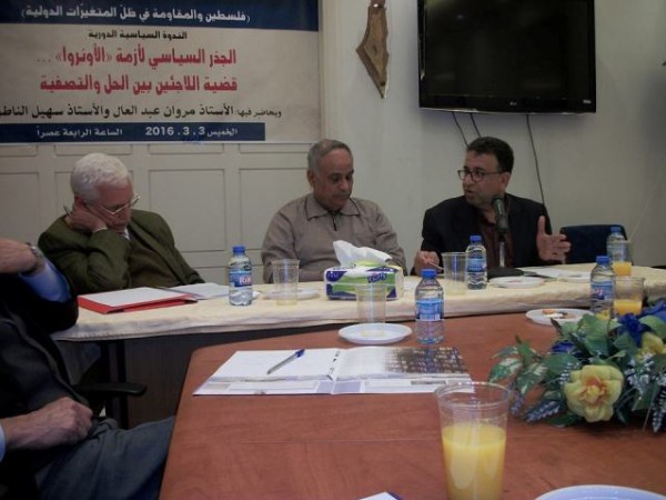 بدعوة من مركز باحث، وتحت عنوان: الجذر السياسي لأزمة "الأونروا" قضية اللاجئين بين الحل والتصفية ، قدم مروان عبد العال، مسؤول الجبهة الشعبية لتحرير فلسطين في لبنان محاضرة أمام نخبة من السياسيين والمثقفين، حول موضوع الأونروا، في مركز باحث بمنطقة بئر حسن في ضاحية بيروت .
