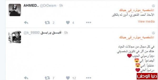 من هي الشخصية المؤثرة في حياتك. ؟ ,, هاشتاج جديد تصدر الترند المحلي لعدة دول عربية ليشارك عليه عشرات الالاف بالشخصيات التي أثرت في حياتهم أو التي تركت انطباعا لا ينسى .