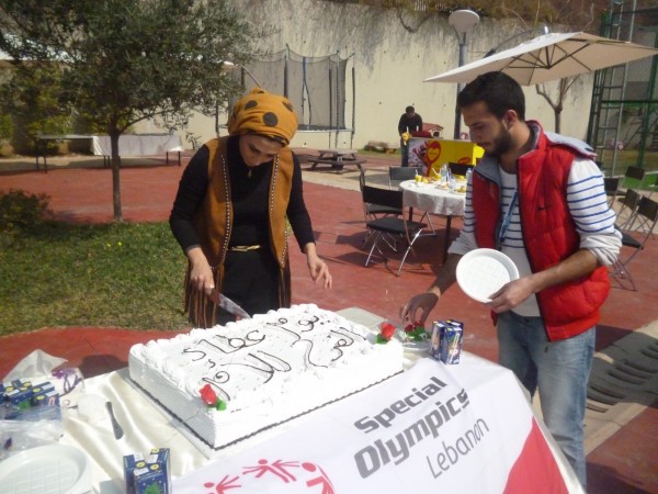 وفي الختام جرى تقطيع قالب الحلوى وأخذ صورة جماعية وتقديم عربون تذكاري من المتطوعين والأولمبياد الخاصة للحضور.