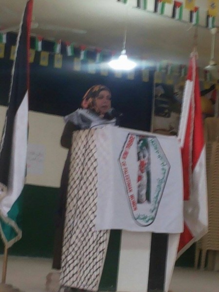 كلمة المكاتب النسوية الفلسطينية القتها السيدة "أم رأفت" مسؤولة منظمة المرأة التقدمية في الشمال اشادت خلالها بتعاظم دورالفلسطينيات على كافة المستويات .