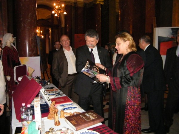 وزار رئيس البرلمان الهنغاري الأجنحة العربية المشاركة و توقف أمام جناح سفارة دولة فلسطين حيث شرحت سفيرة فلسطين في هنغاريا ماري أنطوانيت سيدن مضامين اللوحات و الصناعات التقليدية الفلسطينية و نماذج تراثية.