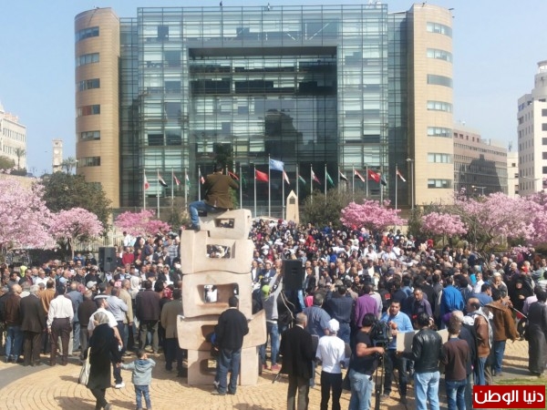 ضمن الخطوات التي يقوم بها الشعب الفلسطيني في لبنان، للضغط على الأونروا للتراجع عن قراراتها الأخيرة القاضية بتقليص خدماتها الطبية والاستشفائية والتعليمية، نظمت خلية إدارة الأزمة، اليوم الجمعة، اعتصاماً حاشداً أمام مقر الإسكوا وسط العاصمة اللبنانية بيروت. شارك فيه ممثلو الفصائل الفلسطينية واللجان الشعبية ومئات اللاجئين الفلسطينيين جاؤوا من مختلف المخيمات الفلسطينية في لبنان للتعبير عن رفضهم لقرارات الأونروا.