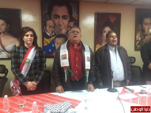 وألقى رئيس البلدية كلمة عبر من خلالها عن وقوف الشعب الفنزويلي الى جانب فلسطين في نضاله لتكريس دولته المستقلة وتحقيق سيادته عليها. وأرسل تحياته الى الأسيرات والأسرى الفلسطينيين متمنياً لهم الحرية، وقال "نقدم هذا الوسام الى نساء الشعب الفلسطيني من خلال سفيرة دولة فلسطين لنعبر عن بطولاتهن ووفائهن ووطنيتهن الحية لمواصلتهن الدفاع عن وطنهن".