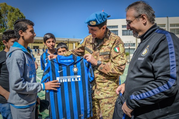 نظم فريق انتر ميلان الايطالي وبالتعاون مع الكتيبة الإيطالية العاملة في إطار قوة الأمم المتحدة المؤقتة اليونيفيل معسكر تدريبي في كرة القدم في مدرسة المنصوري في قضاء صور بجنوب لبنان .