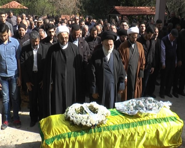 وجابت مسيرة التشييع شوارع البلدة يتقدمها سيارات الإسعاف التابعة للهيئة الصحية الإسلامية والفرق الكشفية وصولاً إلى جبانتها، حيث أقيمت الصلاة على جثمان الفقيد الذي لفّ بعلم حزب الله بإمامة إمام البلدة السيد عبد الصاحب فضل الله، ليوارى بعدها في ثرى جبانة البلدة.