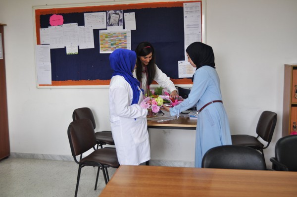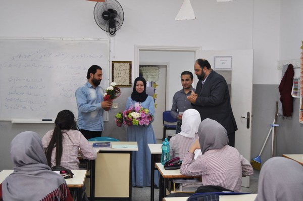 حيث قدم مدير المركز الأستاذ ماجد مركيز الورود للهيئتين الادارية والتعليمية وألقى كلمة شكر فيها الجهود التي يبذلونها في سبيل انجاح مسيرة المركز التربوية والاثر الايجابي الذي يطبعونه في نفوس كل الطالبات مستشهداً بقصة حصلت بين مدير واستاذ وطالب حيث ان الاستاذ رسم مستقبل طالب بكلمة ايجابية.