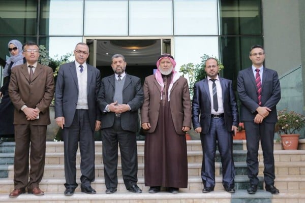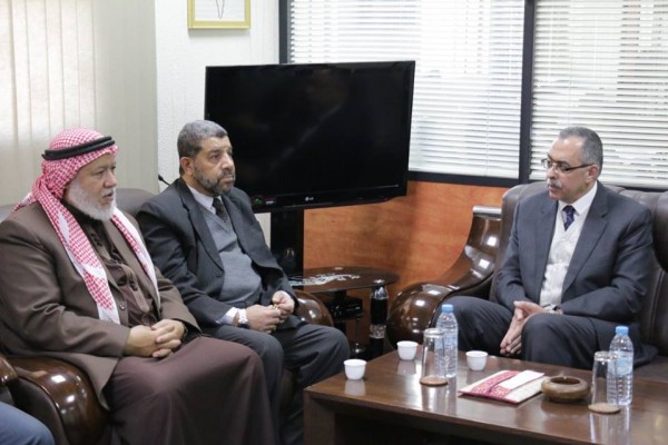 وضم وفد النواب د. مروان أبو راس، ود. أحمد أبو حلبية، وكان في استقبالهم رئيس الجامعة د. رفعت رستم، ود. علي الخطيب النائب الأكاديمي، ود. وسام ساق الله النائب الاداري، ود. هاني قوصة نائب رئيس كلية شؤون التخطيط والعلاقات الخارجية.
