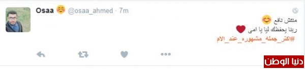 غرّدت احداهن : "صليتي_ اكلتي _ درستي _ استودعتك الله جلعني ما انحرم منك يا جنتي"، وغرّد آخر : "نتش نافع ربنا يحفظك ليا يا امى "