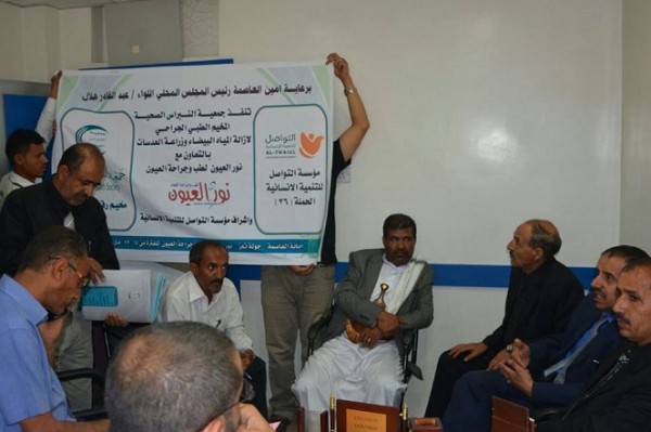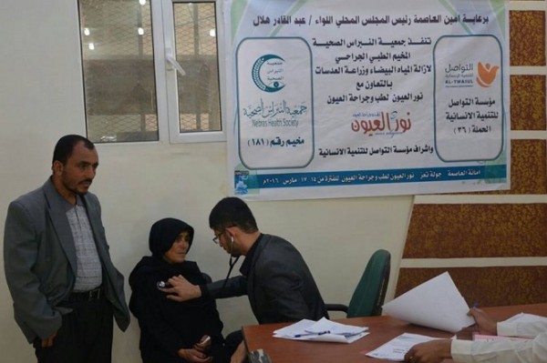 برعاية أمين العاصمة رئيس المجلس المحلي اللواء / عبد القادر هلال ، وبدعم من مؤسسة التواصل للتنمية الانسانية تنفذ مع جمعية النبراس الصحية الحملة الطبية السادسة والثلاثون لإزالة المياه البيضاء مع زراعة العدسات وصرف العلاجات المجانية ، بالتعاون مع نور العيون لطب وجراحة العيون.