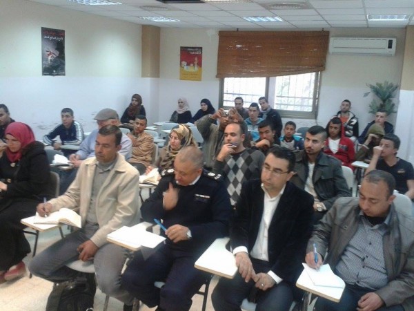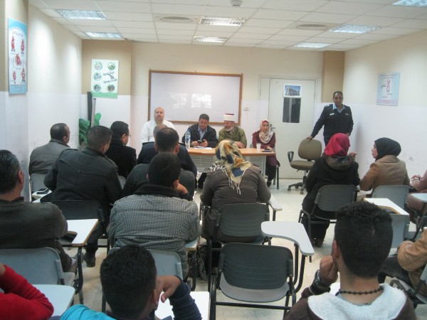 وقد التقى مدير شرطة جنين العقيد الحقوقي بفضيلة مفتي محافظة جنين الشيخ محمد ابو الرب وبالاخت ايمان نزال نائبة رئيسة اتحاد جمعيات المراة في محافظة جنين والاخ وديع ابو حنانه مسؤول ملف الانشطه اللامنهجيه وطلاب المركزوكذلك بالاستاذ الفاضل كفاح ابوسرور مدير منتدى شارك الشبابي جنين وبعدد من متطوعي جامعة القدس المفتوحه جنين .