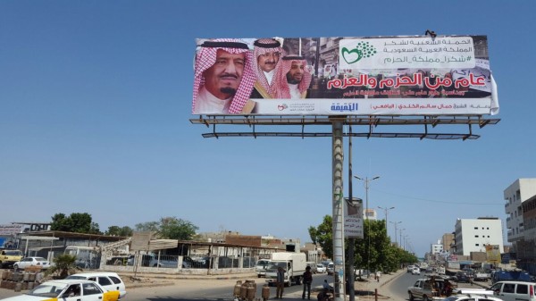 هذا وكانت حملة "شكرا مملكة الحزم" رفعت عشرات اللوحات العملاقة في عدن لمملكة العربية السعودي التي قادت عاصفة الحزم لإنقاذ اليمن ..