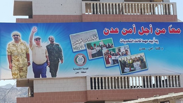 تضامنت المؤسسة الاقتصادية عدن مع تقوم به السلطة المحلية في المحافظة من خطة أمنية لمداهمة أوكار الإرهابيين في مديرية المنصورة وذلك من خلال رفع لوحة إعلانية علقت على مدخل مديرية المعلى ،الجهة المقابلة لجبل حديد..