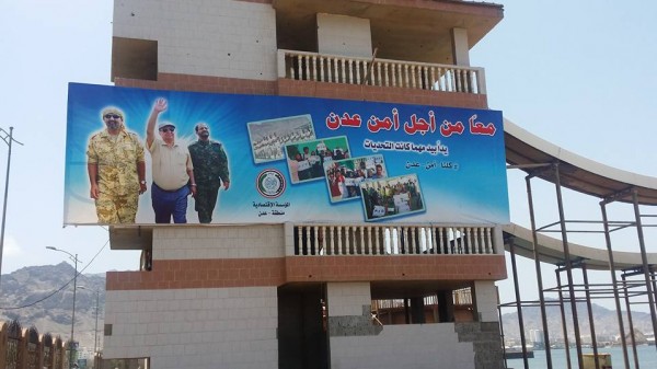 حيث احتوت اللوحة على الصورة التي رافق فيها اللواء عيدروس الزبيدي محافظ محافظة عدن واللواء شلال شائع مدير أمن عدن المشير القائد الرمز عبد ربه منصور هادي عدن عقب تسليم الميناء ،احتفاء بهذا النجاح ،ومؤكدة على استمرار تتالي النجاحات التي تقدمها السلطة السياسية والشرعية والسلطة المحلية في إرساء واستتاب الأمن في المحافظة .