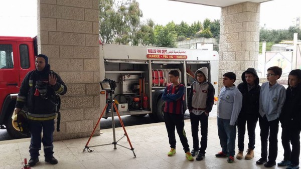 المدرسة الإسلامية الأساسية للذكور تستضيف فريق من اطفائية بلدية نابلس