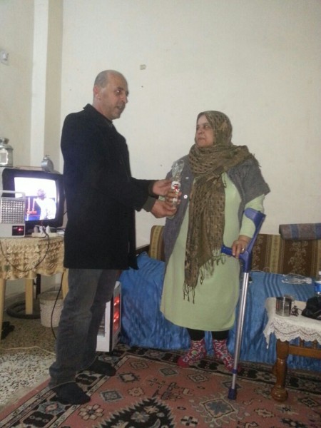 بمناسبة عيد الام جال مسؤول الجبهة الديمقراطية عاطف خليل يرافقه مسؤول لجان النازحين محمد ابو ناصر وام العبد علو ،بزيارة لعدد من الامهات الفلسطينيات المهجرات من مخيمات سوريا في منازلهم لتهنأتهم بعيد الام ، وقدم لهن الورود .